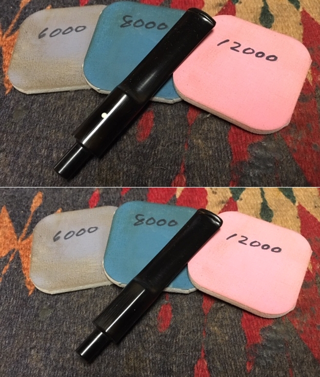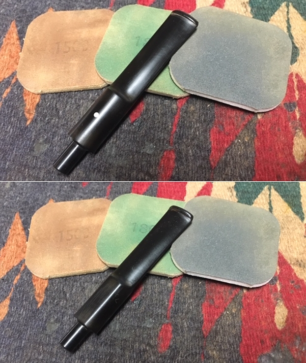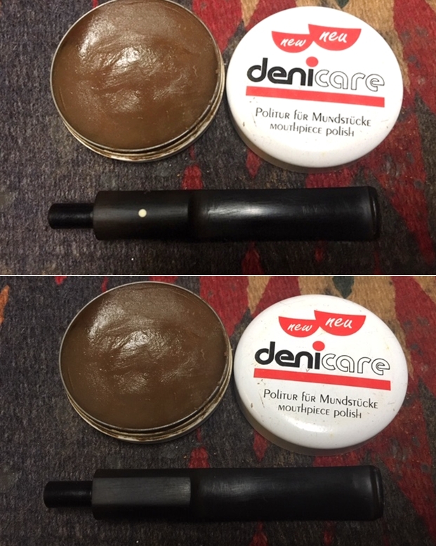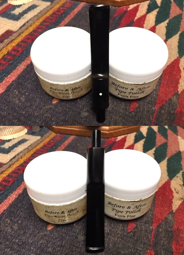 I polished the stem with Denicare Mouthpiece Polish to take out the oxidation at the button edge and on the end of the mouthpiece. I also worked hard to scrub it from the surface of the stem at the tenon end.
