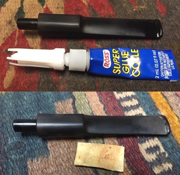 I removed the stem and was surprised to find that a repairman had replaced an obviously broken tenon with a white nylon/Teflon tenon. It fit perfectly but was a surprise nonetheless.