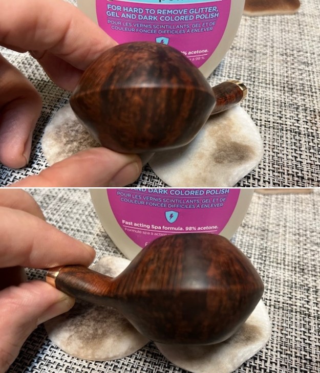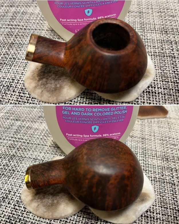 I turned to work on the pipe itself. Jeff had done an amazing cleanup of the pipe. He reamed the light cake with a PipNet reamer and cleaned up that with a Savinelli Fitsall Pipe Knife. He scrubbed the internals of the bowl and stem with alcohol, cotton swabs and pipe cleaners. He scrubbed the externals with undiluted Murphy’s Oil Soap and rinsed the bowl off with running water. He soaked the stem in Briarville’s Pipe stem Deoxidizer and once it had soaked rinsed it off with warm water to remove the residual solution. He dried it off and rubbed it down to remove any oxidation that was still on the stem. The pipe looked very good when I received it.