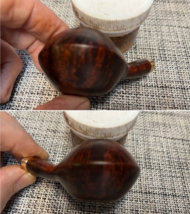He took photos of the bowl and rim top to show their condition and of the stem to show the condition of both sides of the stem.