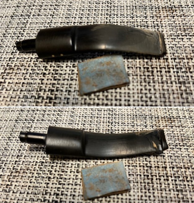 I took a photo of the underside of the shank to show the stamping. The photo clearly shows the stamping and is actually more readable in person. I removed the stem from the shank and took a photo of the pipe parts to show what I was working with. It is a nice looking pipe.