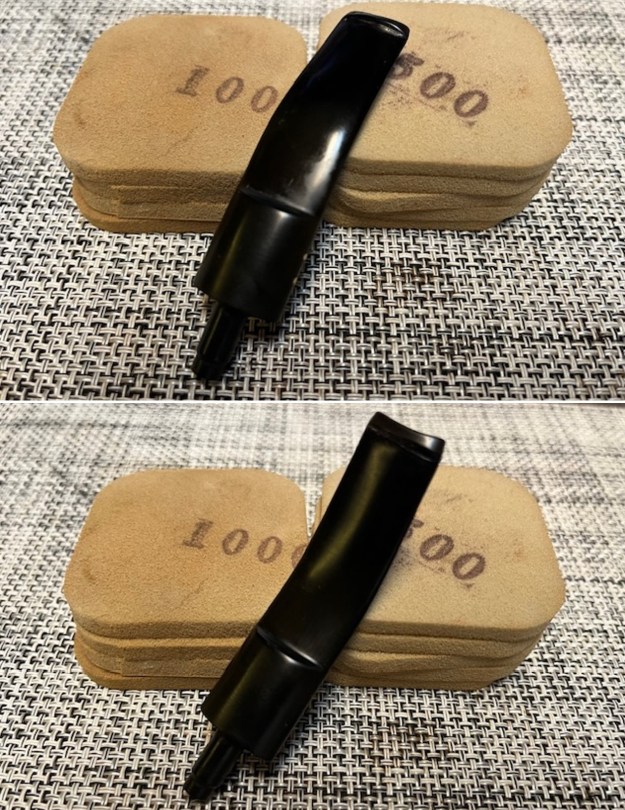The stem marks were light enough that I polished the vulcanite with micromesh sanding pads – 1500-12000 grit pads. I wiped it down with Obsidian Oil after each sanding pad. I used Before & After Pipe Polish – both Fine and Extra Fine to further polish the stem.