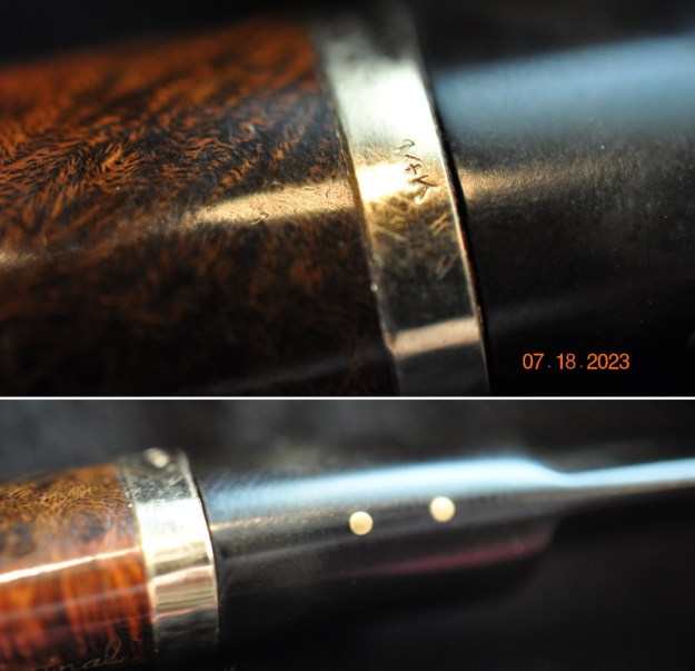 The stamping on the underside of the shank is shown in the photo below. It looks very good and faint but readable. It reads as noted and explained above. Jeff captured the detail in the photos below.