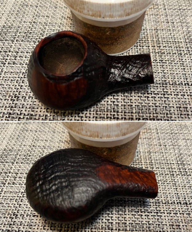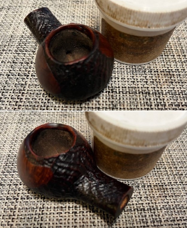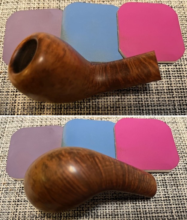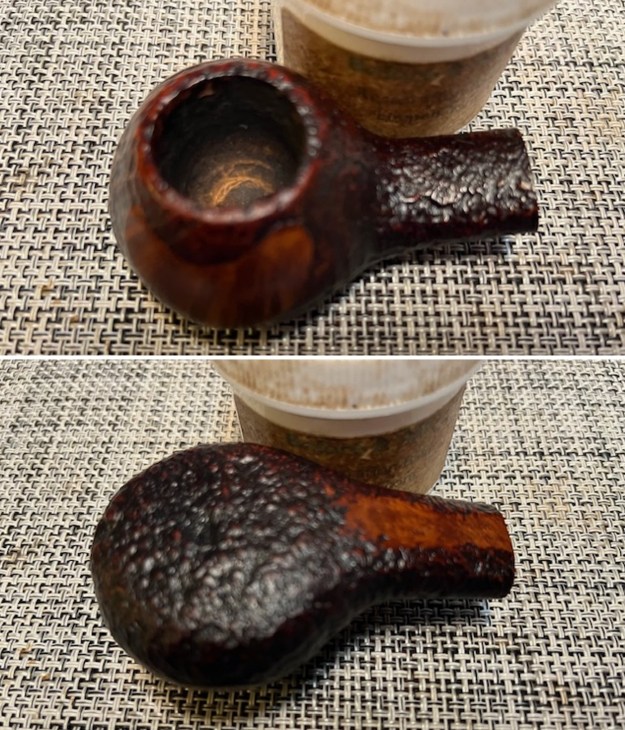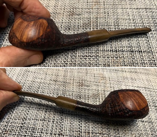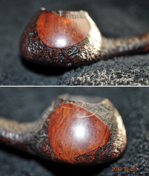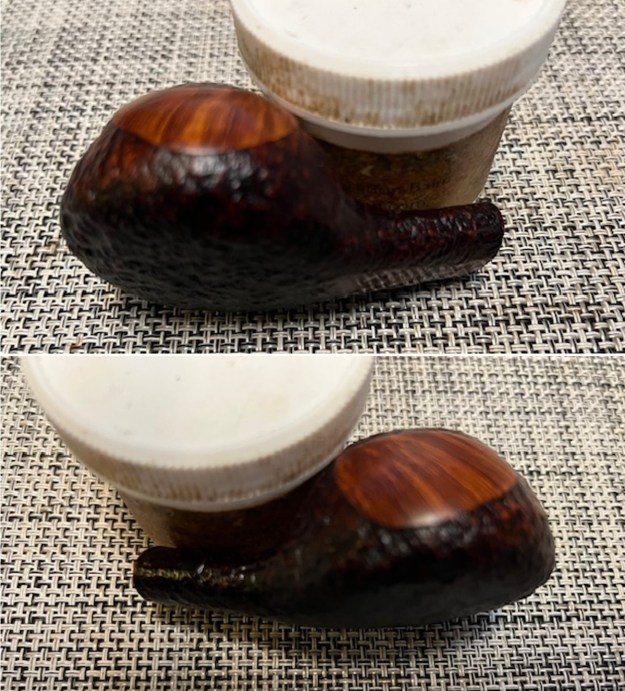 The photos of the sides and heel of the bowl show a unique rusticated finish with smooth panels on the pipe and makes the grain really stand out on the bowl and shank. This bowl shows real promise.