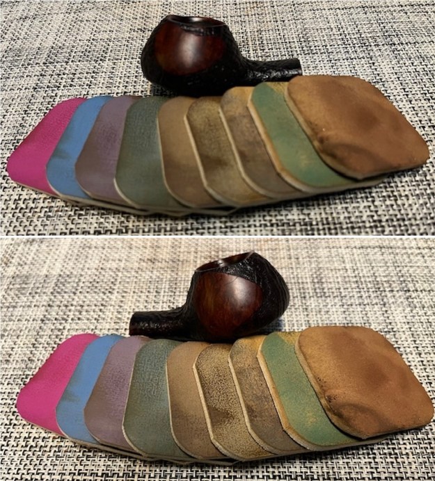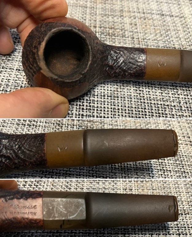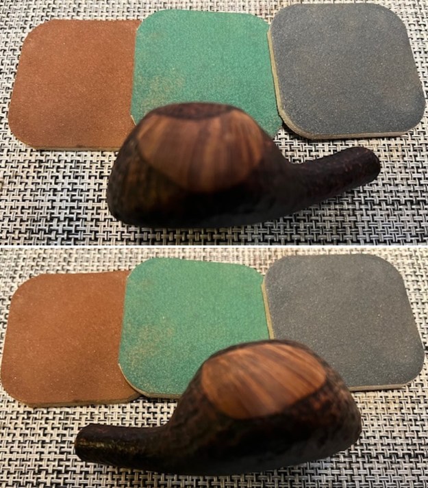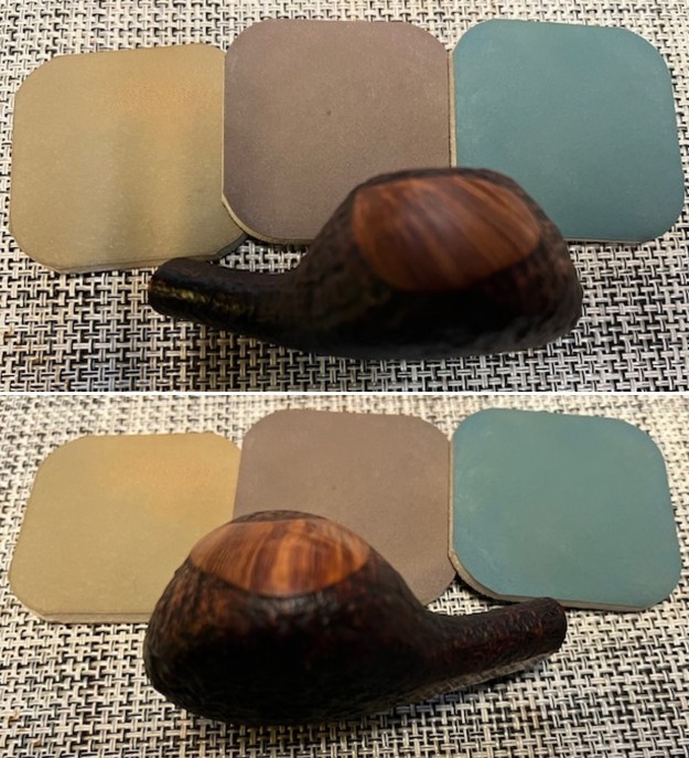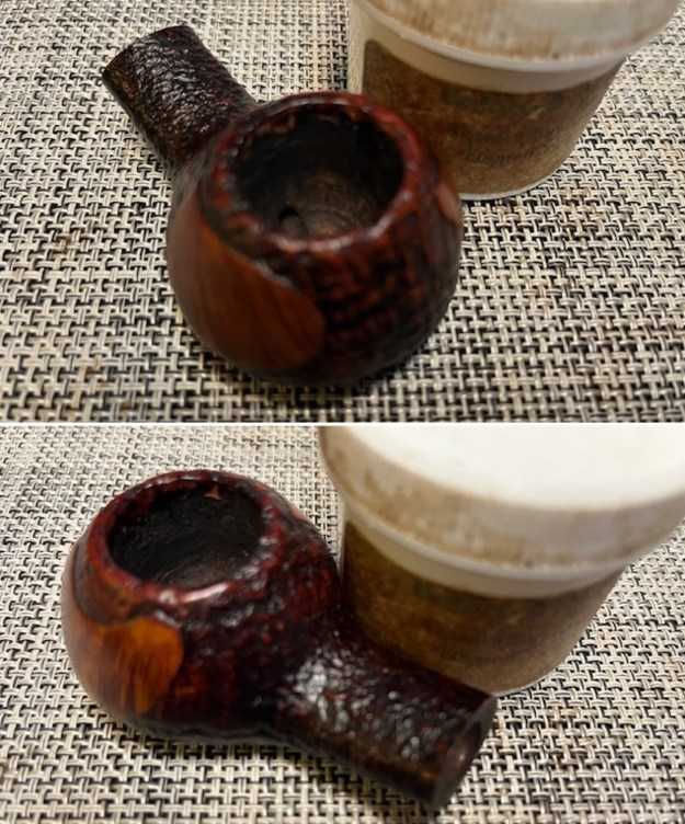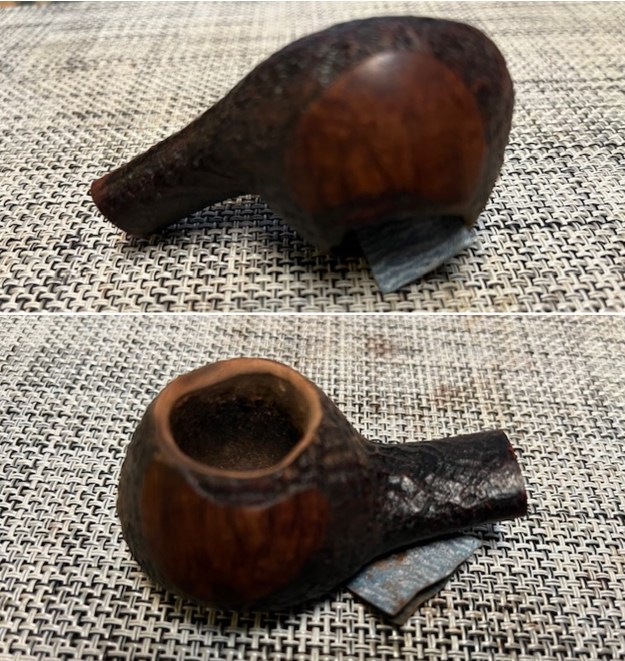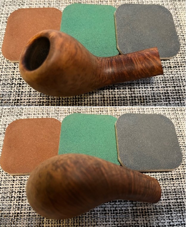 The photos of the sides and heel of the bowl show a unique rusticated finish with smooth panels on the pipe and makes the grain really stand out on the bowl and shank. This bowl shows real promise.