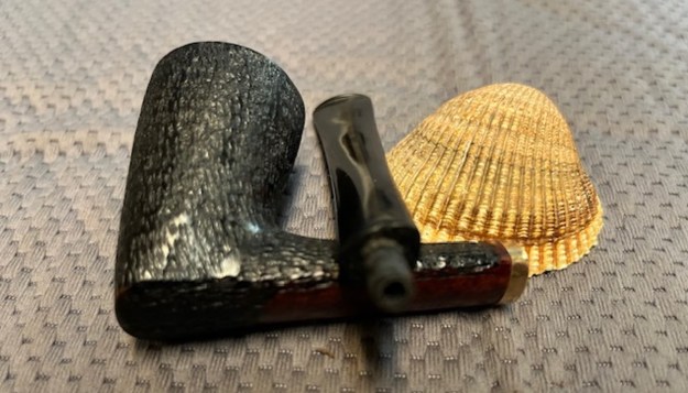 He took photos of the stamping on the sided of the shank. It is clear and quite readable. It reads as noted above. He also took a photo of the twin bands on the stem end – the brass and green acrylic band.