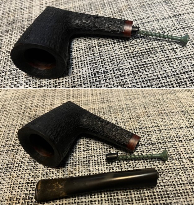 I took photos of the stamping on the sides of shank. The stamping is clear and readable (much clearer in person than the photos show). I took a photo of the pipe with the stem removed to show the overall look of stem, tenon and profile of the pipe.