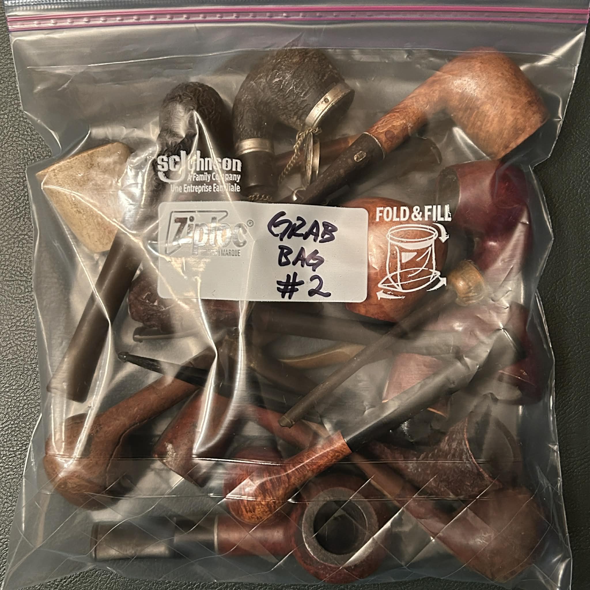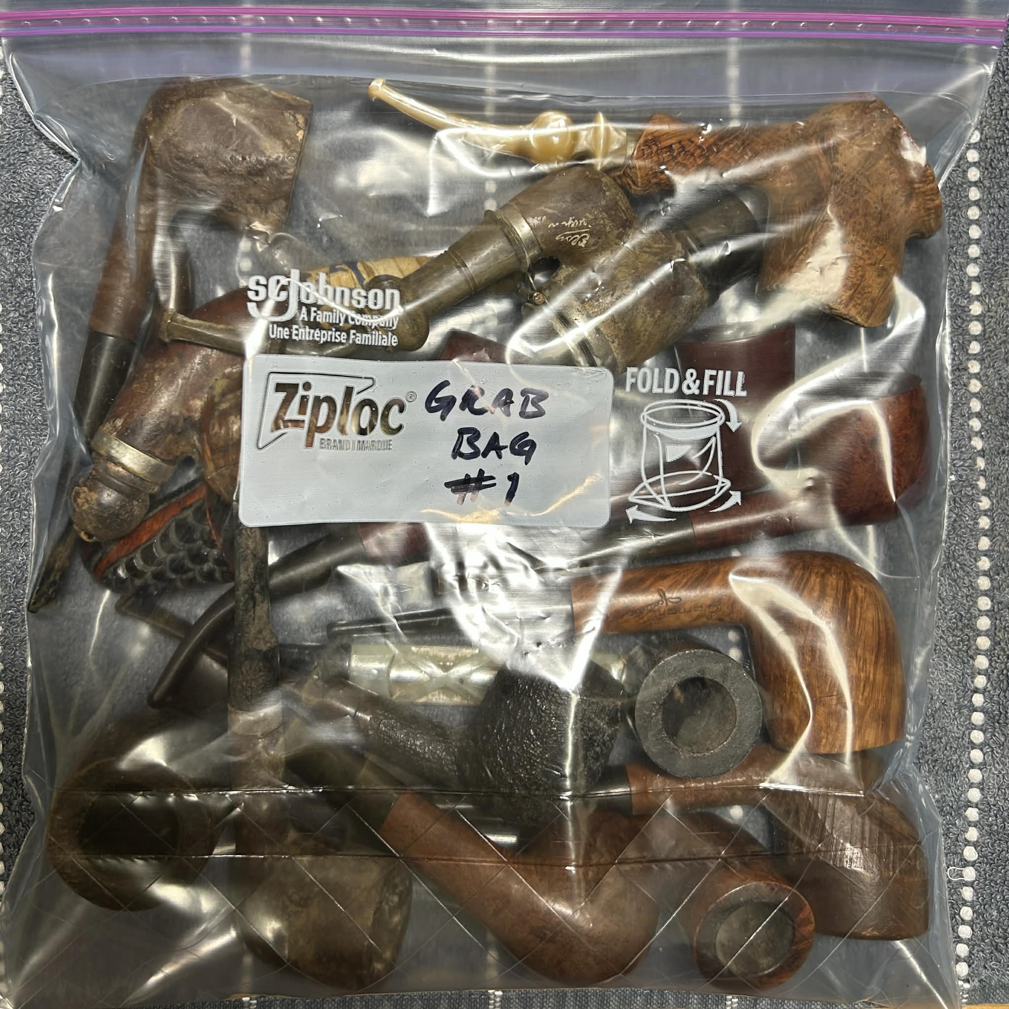 • Jeff and I have put together another group of Grab Bags. Each bag has a minimum of 15 pipes in it that come in various shapes and sizes from our restoration bins. All pipes are unrestored and will need various levels of restoration. That means that you get to restore them. They include a variety of brands and makers that are a part of the mystery. These are all final sales and all include an element of risk – you do not know what you are buying until you receive them! COST- $80USD + Postage to be paid by the buyer. If product is being shipped to locations other than the US contact me before completing the sale at slaug@uniserve.com SOLD OUT!!