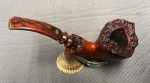 This is W.O. Larsen Handmade in Denmark Freehand Dublin with an acrylic saddle stem can be yours today. It uses a beautiful piece of briar with a shallow sandblast around the bowl and shank. The flat sandblast rim top works very well to give a stylized look. It is stained with a combination of rich browns that works well with the oval, acrylic saddle stem. The pipe is stamped on the underside of the shank and reads W.O. Larsen [over] Handmade [over] Made in Denmark. The finished W.O. Larsen Freehand Dublin fits nicely in the hand and feels great. The dimensions of the pipe are Length: 6 ½ inches, Height: 2 ½ inches, Outside diameter of the bowl: 1 ¾ inch, Chamber diameter: ¾ of an inch. The weight of the pipe is 51 grams/1.80 ounces. Give the finished pipe a look in the photos below. If you are interested in carrying on the previous pipe man’s legacy with this pipe send me a message or an email. PRICE $70USD + $12USD Postage to be paid by buyer. If product is being shipped to locations other than the US contact me before completing the sale at slaug@uniserve.comThis slideshow requires JavaScript.