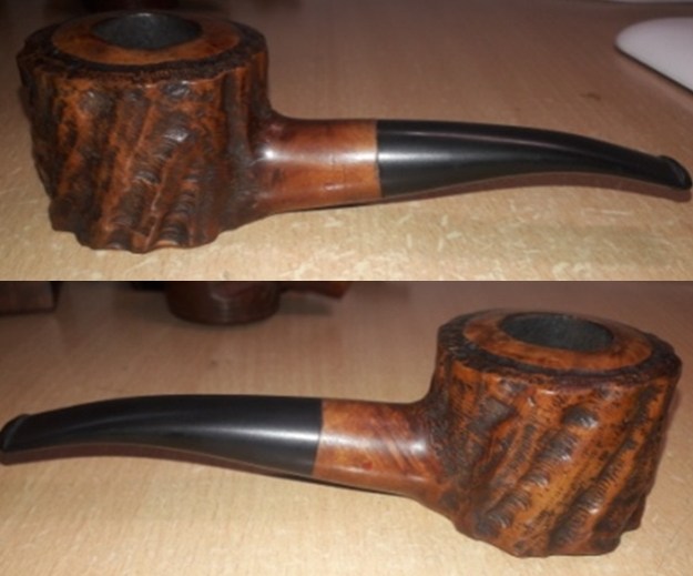 This early Tracy Mincer made Custom-Bilt billiard was an absolute disaster when we found it. I cleaned up the shank, banded it to smooth it out and made a new stem. It is a great looking pipe. The brown stain on the mixed grain shining through the rustication is quite nice. The finish on the pipe is in excellent condition and the contrasting stains work well to give some contrast to the finish of the pipe. The polished black vulcanite taper stem adds to the mix. With the grime, debris and burn marks minimized from the finish the bowl it is really is eye-catching. The thin gold coloured band looks really nice on the shank. I put the stem back on the bowl and buffed the pipe with Blue Diamond on the buffing wheel, carefully avoiding the stamping on the shank. I gave the bowl multiple coats of Conservator’s Wax and the stem multiple coats of carnauba wax on the buffing wheel and followed that by buffing the entire pipe with a clean buffing pad. I hand buffed the pipe with a microfiber cloth to deepen the shine. The finished chunky, rustic Bulldog is quite nice and feels great in the hand. Give the finished pipe a look in the photos below. I can only tell you that like the other pipes I am working that it is much prettier in person than the photos capture. The dimensions of the pipe are Length: 5 ½ inches, Height: 2 inches, Outside diameter of the bowl: 1 ¾ inches, Chamber diameter: ¾ of an inch. Thanks for walking through the restoration with me as I worked over another interesting pipe. This rustic Mincer Custom-Bilt Billiard will be going on the rebornpipes store shortly. Keep an eye on the American Pipe Makers section of the store. If you want to add it to your collection send me an email or a message! Thanks for your time.