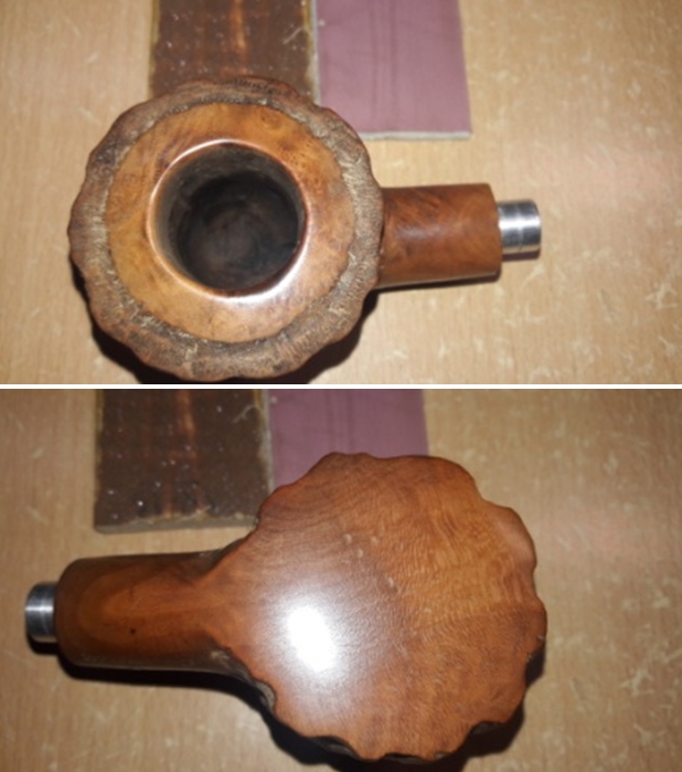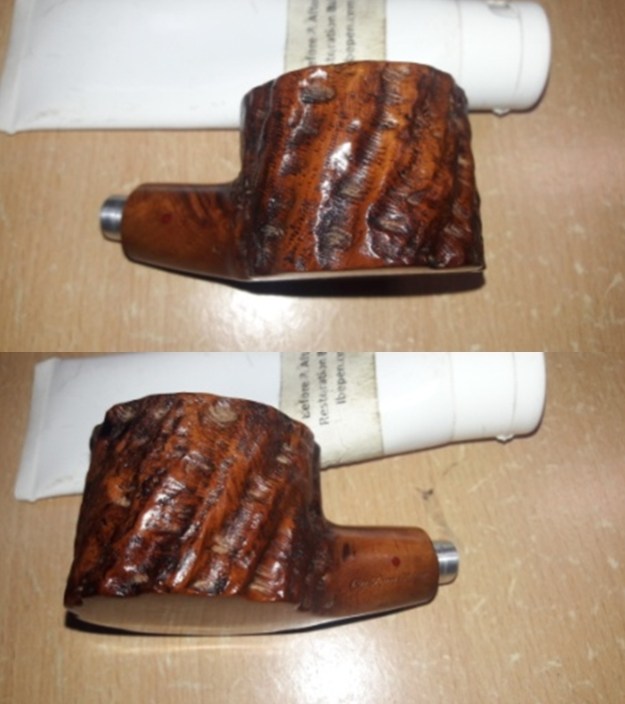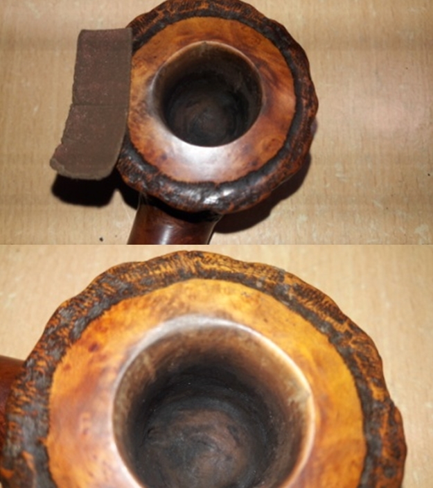 I took a photo of the rim top to show how well it cleaned up and the damage on the front and rim top. I also took a series of photos to show the angles of the misfit stem. You can see that the fit is at an angle. The shank end is also not straight.