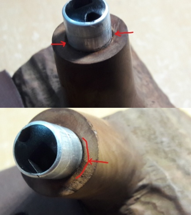 Once the glue on the band had cured I put the new stem in place in the shank to show the fit to the shank end. There is a lot of material to remove from the diameter of the stem at this point but the fit is perfect.