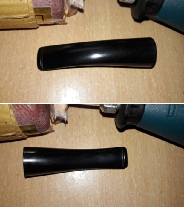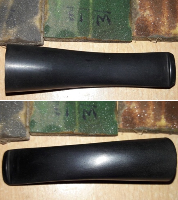 I continued to sand the stem until all of the sanding marks from the drum were gone and the stem was smooth. I started the polishing of the stem with 400 grit wet dry sandpaper. The photos below show the stem at this point.