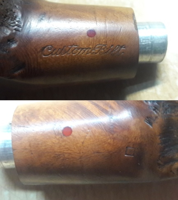 He took a photo of the stamping on the shank side showing the Custom-Bilt stamp. It is readable but fainter toward the bottom of the stamp. The second photo below shows the fit of the stem to the shank and it is clear how it is both larger and off in terms of the fit.