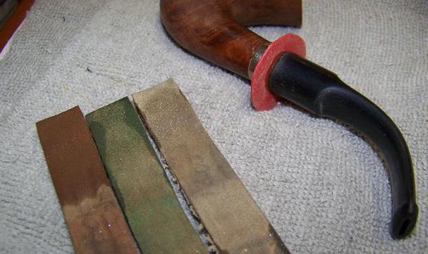 The drill press method works well in theory. Once in a while the stem slips loose from its friction fit with the skewer and I have to reseat it. I work the vulcanite with 60, 120 and 220 grit sand paper, leaving the polishing to be done by hand with micromesh pads.