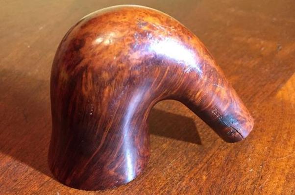 I don’t typically like to buy pipes on eBay. I prefer to be able to see them first hand so I know what I am getting myself into. But in this case the seller was forthcoming in the auction description, revealing that the pipe had a major crack in the bowl and another in the shank and of course, it lacked a stem. But what really fascinated me was the shape of the stummel and what promised to be some beautiful grain patterns.