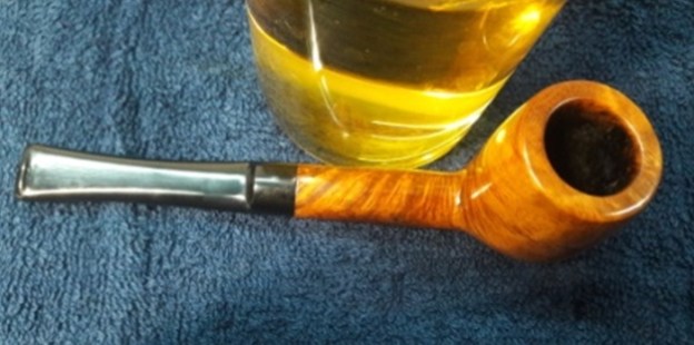 The process of refurbishing this pipe started with the cleaning of the stem. I cleaned the stem air way with regular and bristled pipe cleaners dipped in 99.9% pure alcohol followed by further cleaning of the stem internals with thin shank brushes and dish soap to remove the any stubborn residual gunk from within the airway.