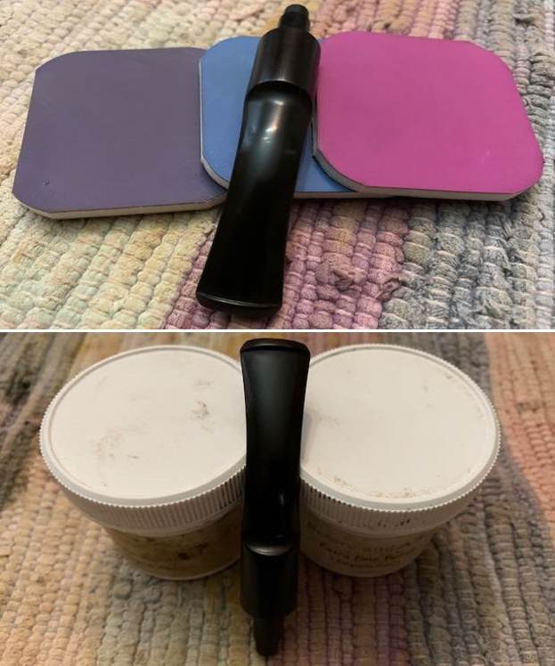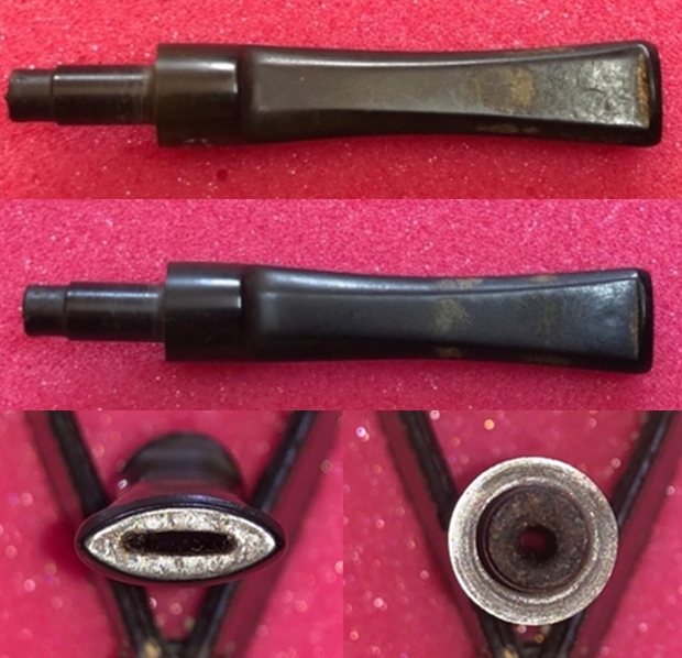 The next evening, I removed the stems that had been soaking in the deoxidizer solution overnight. I cleaned the stem and the stem airway under running warm water and scrubbed the raised oxidation from the stem surface using a Scotch Brite pad and the airway with thin shank brush. I further removed the oxidation by scrubbing the stem with 0000 grade steel wool and applied a little olive oil to rehydrate the stem.