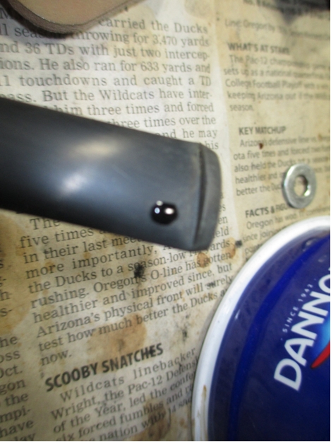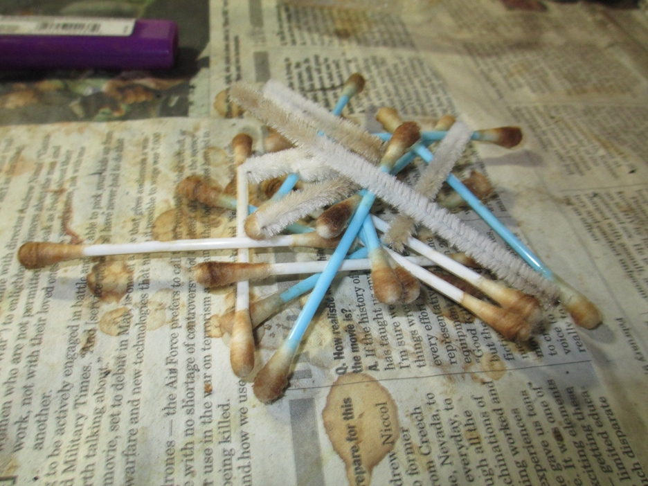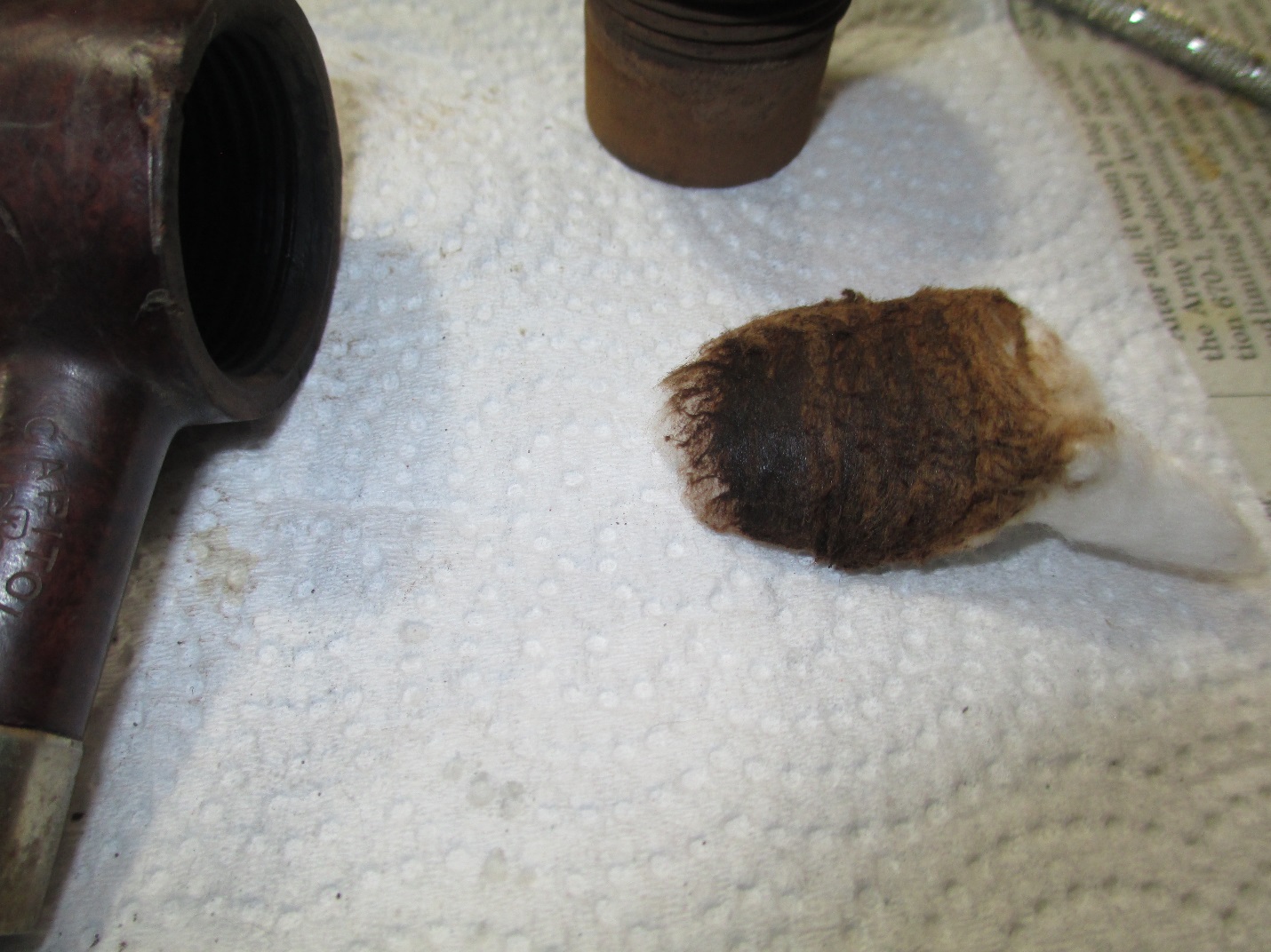 The average bowl takes two cotton balls to fill it, three if it’s kind of big. This bowl swallowed four cotton balls. Here is a picture of them after the retort (notice how the boiling alcohol pulled the tar out of the wood).