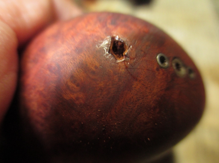 As you may have noticed in previous pictures, the rim on the bowl was in rough shape; scorching, reaming damage, and deep dents. I planned to top the rim and the end of the shank to remove some of the worst damage, but I decided to leave the dimensions as close to original as possible; so I refrained from getting crazy with the sand paper.