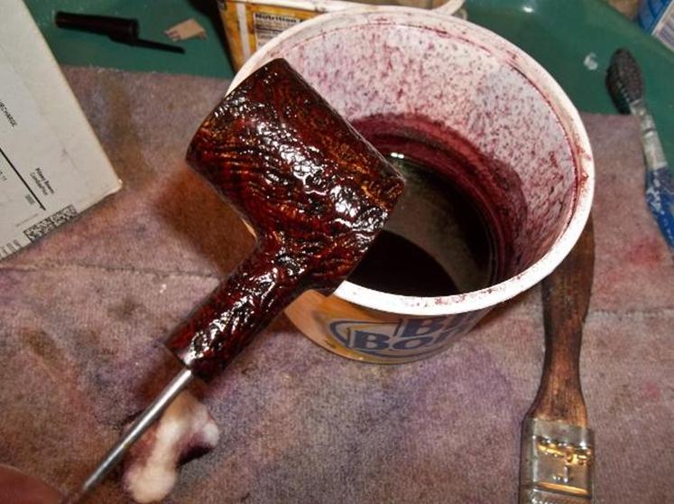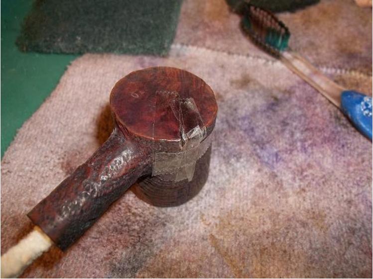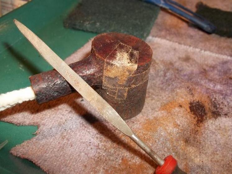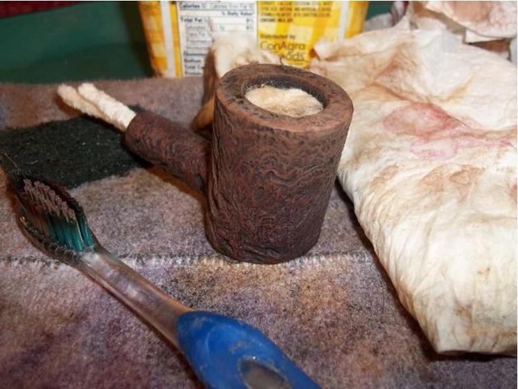 The first thing is to pick the right pipe. This to me is very important especially when doing your first pipes. You want one that’s inexpensive and an easy clean up. So ones with holes in stems and rims that look like they were used to hammer walnuts with might be ones to pass until you get a few under your belt. Not having to sand it a lot and restain is a plus.