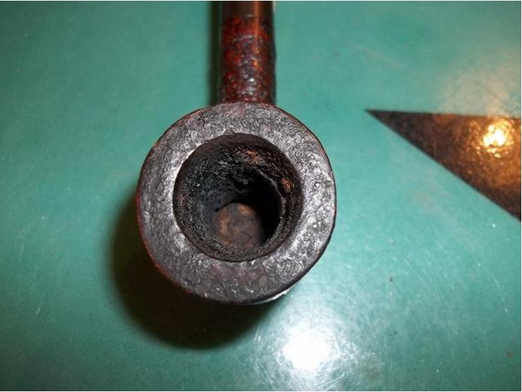Not getting too detailed about how to clean out bowl. All you need if you don’t have a reamer is a dull pocket knife and some coarse sandpaper. I used to use salt baths and or soak them overnight with cotton balls soaked in alcohol (91%), but is not necessary if you do the way I’m going to show you. Be careful not to get over zealous in this as you don’t want to dig gouges in the inner walls of pipe. Just light scrapes to get out biggest part of cake. Most of the time the heavy build up pops right out. After this just roll up your coarse sandpaper in a tight funnel shape and work it up and down and around in bowl. Check progress often as to not take out too much of inner bowl.