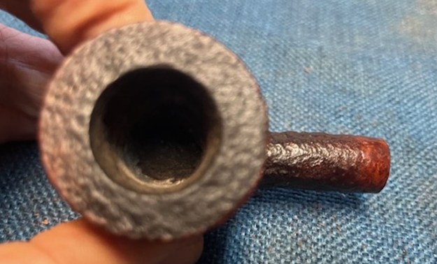 I took a photo of the rim top to capture the condition of the bowl and rim top. I like to capture that condition before I started my work on the pipe. You can see the dust in the sandblast on the rim top and the cake in the bowl. It is a nice looking pipe.