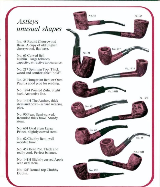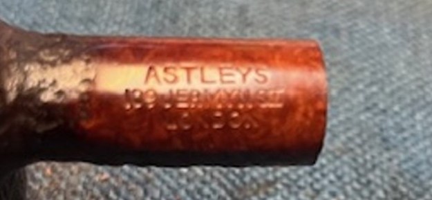 This bowl had been stamped on the smooth bottom and read Astleys over 109 Jermyn St. Under that was stamped London over 48. I looked up the shape in an old Astleys catalogue (page pictured below) and found the 48 was a Round Cherrywood Briar. The description stated that it was a copy of an old English Cherrywood with a flat base. The bend on the stem can also be seen in the photo below from the catalogue.