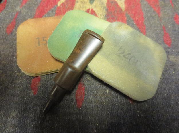 The next straight shank billiard also came to with the two above bowls. This one was by far in the worst condition. It had nail holes around the rim top and the rim cover was oxidized to a dark green and was crumbling. Originally this pipe would have had a built in wind cap with a hinged top but that had long since disappeared by the time I worked on it. I crafted a new stem for it and banded the shank to clean up the disintegrating briar on the shank end. It is an interesting piece https://rebornpipes.com/2013/04/07/reworking-and-reshaping-an-old-french-briar-cpf-billiard/.