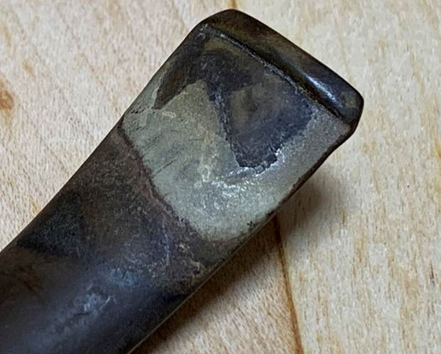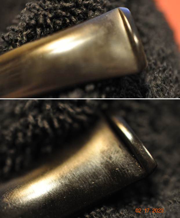 He took photos of the stamping on the underside of the shank. The stamping is there but hardly readable. On the shank end using a bright light to examine it, both Jeff and I see the stamping Bari very faintly.
