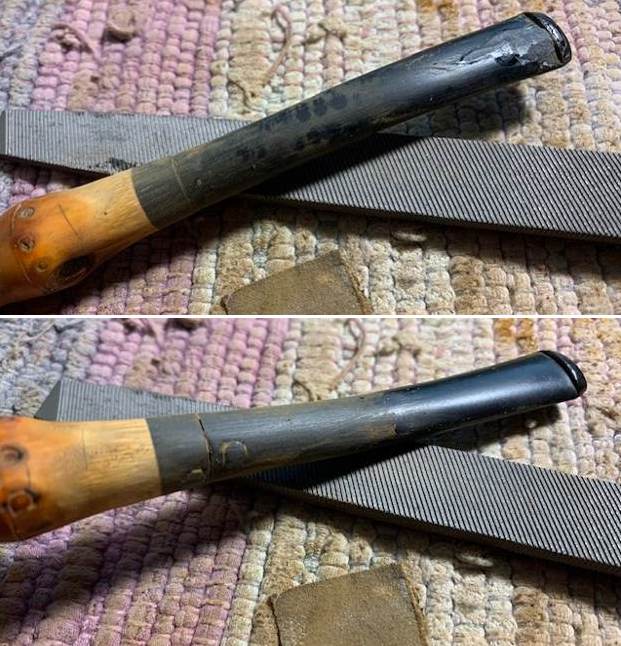 I sanded the stem with the 2 inch square 320-3500 grit sanding pads. I wiped down the stem after each sanding pad with Obsidian Oil. I polished out the scratch marks left behind by the sandpaper. The stem looked very good.