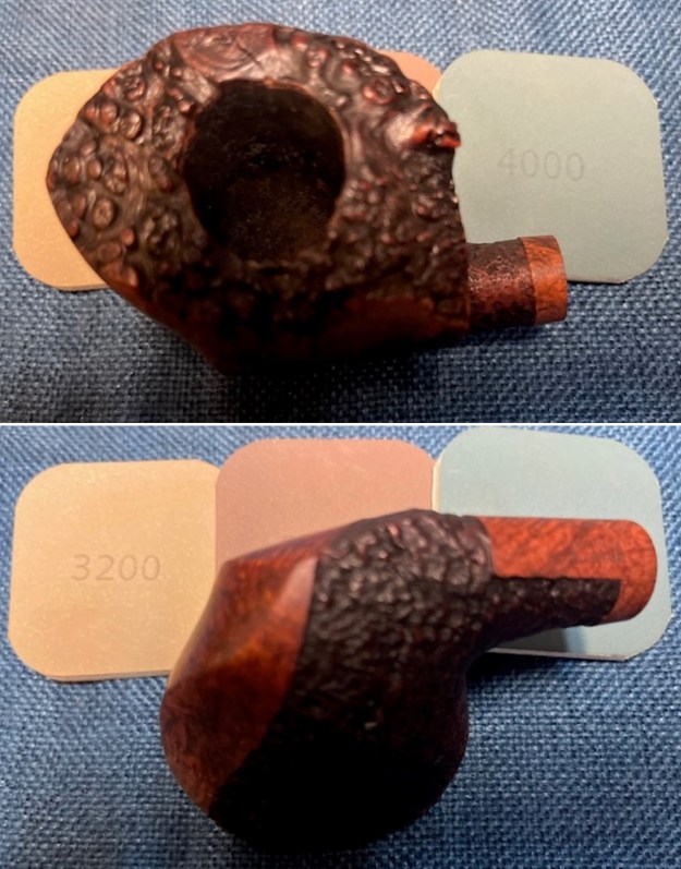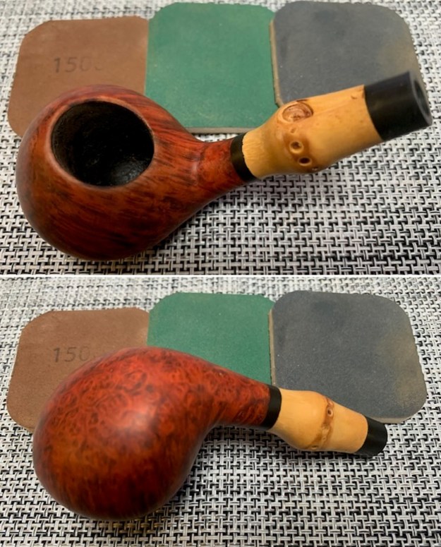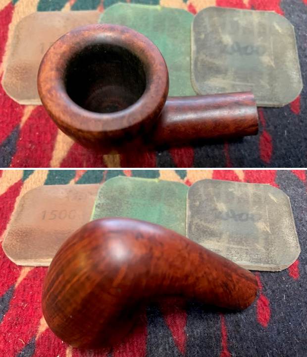 The bowl was in decent condition so I started with polishing the sides and shank with micromesh sanding pads – dry sanding with 1500-12000 grit pads and wiping down the briar after each sanding pad with a damp cloth. The briar began to shine.