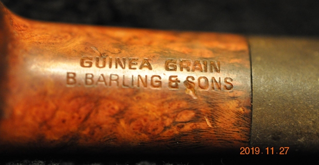 The “MADE IN ENGLAND.” stamp was in use in the 1930’s thru 1962. As with all things related to Barling nomenclature there are variations. Sometimes there is no “MADE IN ENGLAND.” stamp. Examples exist with a “MADE IN LONDON” over “ENGLAND” stamp. And, there are examples with “MADE IN ENGLAND” with no period after the word “ENGLAND”.