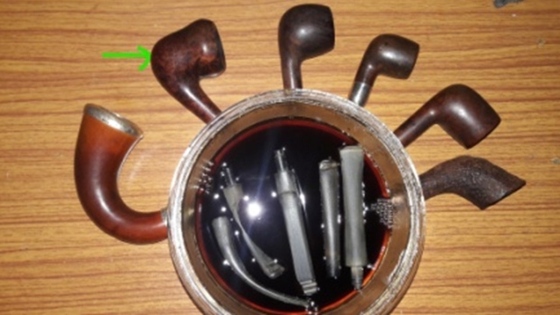 In one of a first, I had decided to work on four pipes simultaneously. Well, honestly, it was a decision which was forced on me due to extraneous circumstances that I had created for me. It so happened that after having discussed with my mentor, Mr. Steve, I decided to work on a John Bessai creation from my Grandfather’s collection. As I was turning the John Bessai in my hands, I felt that there were not very many major issues involved in its restoration and the small Barling’s, also from my old man’s collection, appeared to be a straight slam dunk of a restoration. Thus, I decided to work on both simultaneously, which appeared doable. However, things turned in to a challenge when I was just surfing YouTube on pipe restoration topics. In one of the videos, Hydrogen Peroxide and water solution was used to raise the oxidation to the surface and subsequent cleaning of the same was a breeze. I decided to try out this method and in order to make max use of the solution; I dunked stems of two more pipes in to it. Now I have four pipes in line to restore. I can still manage the restorations; it is the write ups that are a huge challenge for me as Mr. Steve will vouch for the delayed submissions.