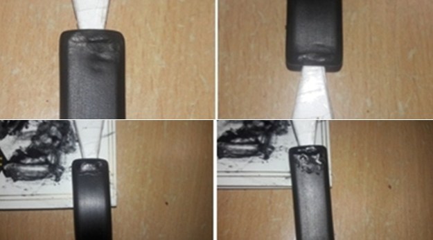 Next, I decided to address the dents and dings on the stummel surface and on the rim outer edge. Using a whitener pen, I marked all the major areas with dents and dings as I had decided to leave the minor ones as they were. I heated my fabricated knife over the flame of a candle, placed a wet Turkish hand towel over the marked areas and steamed out the dents by placing the heated knife over the towel. Though some dents were still observed, these were greatly reduced when compared to before steaming.