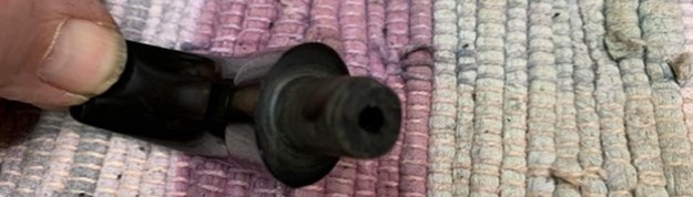 The surface of the stummel is covered by the overflowing lava, which in turn has attracted a lot of dirt and grime over a period of time. The stummel surface is peppered with numerous dents and dings, more so towards the heel of the bowl, probably caused due to careless and uncared for storage for the last 40-45 years!!!! It will be a big decision whether to address these dents and dings by abrasive sanding method and loose the patina which has developed on the surface, or let them be. Well, I shall cross the bridge when I reach it. The mortise is surprisingly clean and air flow through it is open and full.