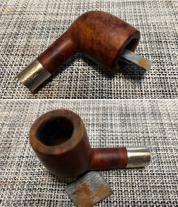 During the handling of the stummel, the Sterling silver band came off allowing me to check for damage underneath the band. Thankfully other than being filthy, there was none. I cleaned the mortise with hard bristled pipe cleaners and alcohol. Using a fabricated tool, I scraped the dried accumulated gunk from the mortise to the extent possible. The mortise would be further cleaned during the stummel cleaning.