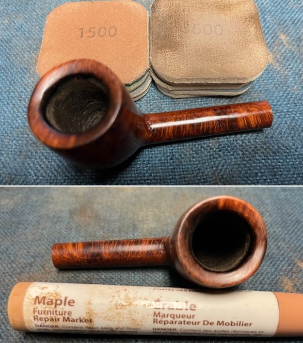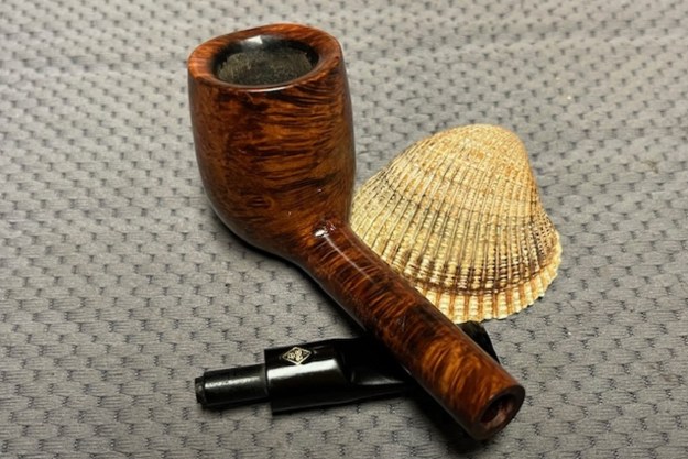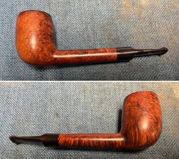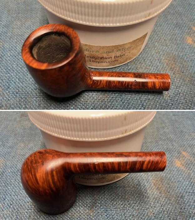 All finished! This is a wonderfully crafted pipe and has a very jaunty feel to it. It took some work, but I am proud of it. It retains some wounds from battle, but, as Steve would say, they are part of this pipe’s story. This is one pipe that I am keeping for myself and adding to the ‘Lieblich Collection’. I am sure that I will be enjoying this one for many years to come. The approximate dimensions of the pipe are as follows: length 6 in. (153 mm); height 1½ in. (37 mm); bowl diameter 1 in. (27 mm); chamber diameter ⅔ in. (17 mm). The weight of the pipe is ⅝ oz. (18 g). I hope you enjoyed reading the story of this pipe as much I as I did restoring it. If you are interested in more of my work, please follow me here on Steve’s website or email me directly at kenneth@knightsofthepipe.com. Thank you very much for reading and, as always, I welcome and encourage your comments.