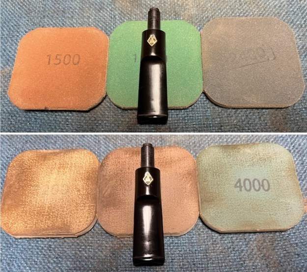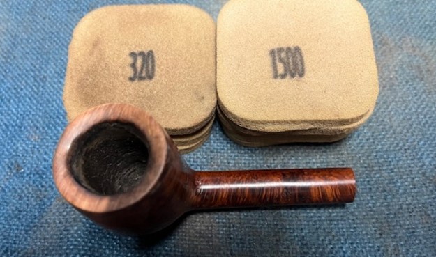 In order to smooth and shine the beautiful black surface of the stem, I used my nine Micromesh pads to sand everything down gradually and delicately. For the last five of these pads, I also use some oil, both as a lubricant and as a method of inhibiting the return of oxidation. It is a lovely stem and it complements the stummel perfectly.