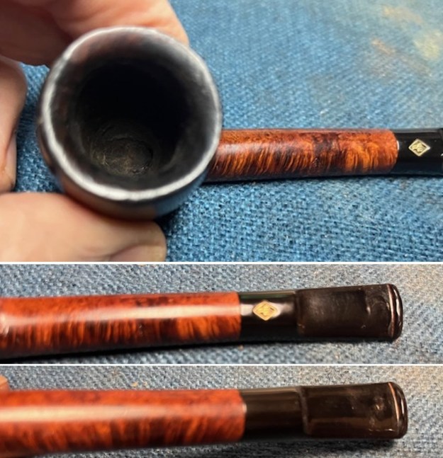 That information was definitive in establishing a time period for the pipe. The other marks are perhaps slightly less helpful. The left side of the shank, the left side of the stem, and the silver band each have the recognizable logo of BBB inside a diamond shape. There are no other markings – although the absence of a model name etc. tells its own story. Read on.