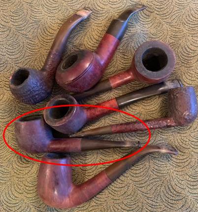 I have worked on seven of the eight Barclay-Rex pipes from this collection now and I am turning next to the last one – a large graceful looking Bent Billiard. It really is a beauty in terms of shape and grain. I have circled it in red in the photo above. This pipe is stamped on the left side of the shank and reads BARCLAY-REX [over] New York. The stamping is readable and there is no shape number evident.