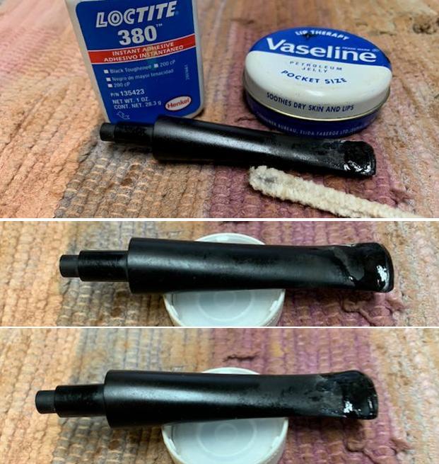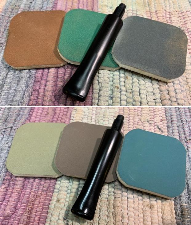 I set the bowl aside and turned my attention to the stem. I “painted” it with the flame of a Bic lighter to lift the tooth dents in the vulcanite on both sides. I sanded what remained smooth with a folded piece of 220 grit sandpaper to blend them in the rest of the stem surface. I started polishing the stem with 400 grit wet dry sandpaper.