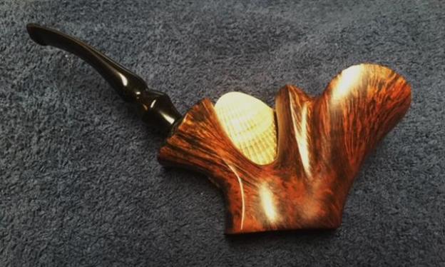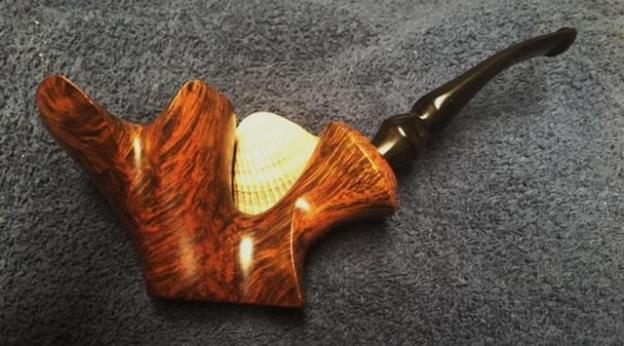 This is a beautiful Preben Holm made Ben Wade Golden Walnut with a fancy, turned, black vulcanite stem. It has a great look and feel. The shape fits well in the hand with the curve of the bowl and shank junction a perfect fit for the thumb around the bowl when held. I polished stem and the bowl with Blue Diamond polish on the buffing wheel. I gave the bowl and the stem multiple coats of carnauba wax. I buffed the pipe with a clean buffing pad to raise the shine. I hand buffed it with a microfiber cloth to deepen the shine. The pipe polished up pretty nicely. The rich combination of browns and black in the smooth finish and the plateau areas took on life with the buffing. The rich colour of the briar works well with the polished vulcanite stem. I like the grain and finished look of this Preben Holm Ben Wade Golden Walnut pipe. Have a look at it with the photos below. The dimensions are Length: 7 inches, Height: 2 ½ inches, Outside diameter of the bowl: 1 ½ inches wide x 2 inches long, Chamber diameter: 1 inch. The weight of the pipe is 2.40 ounces/ 69 grams. This Danish Freehand is a real beauty. Thanks for walking through the restoration with me as I worked over another beautiful pipe. This one will be going on the rebornpipes store in the Danish Pipemakers Section shortly if you would like to add it to your collection. Thanks for your time.