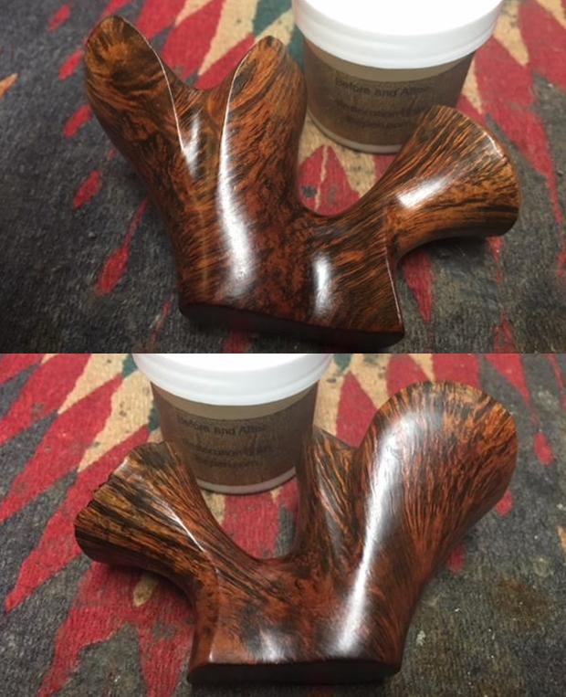 Jeff took several photos of the stamping on the underside of the shank to capture all of the stamping. It was clear and read Ben Wade in script at the top. Under that it read Golden Walnut. Under that was stamped Hand Made in Denmark.