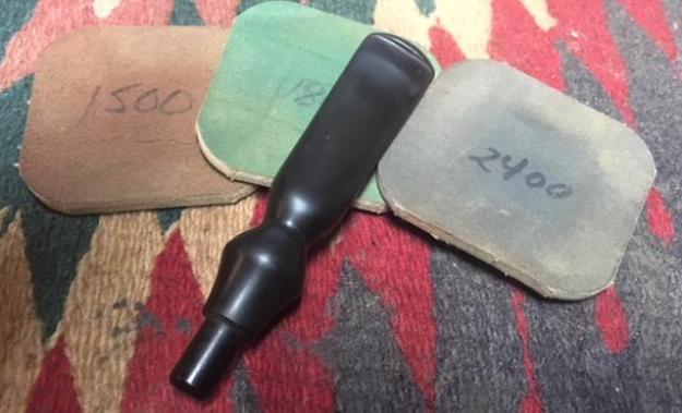 I polished the stem with micromesh sanding pads – wet sanding with 1500-12000 grit sanding pads. I wiped it down after each sanding pad with some Obsidian Oil. I finished polishing it with Before & After Pipe Stem Polish – both Fine and Extra Fine and buffed it off with a cotton cloth. I wiped it down with Briarville’s No Oxy Oil to protect the stem and slow down the oxidation.