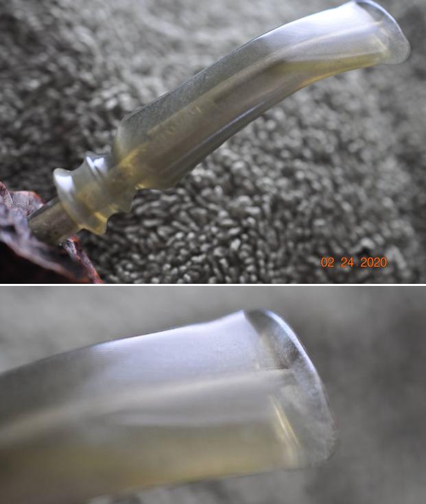 As the stem was now clean and dry, I set about fixing the marks and dents in the vulcanite. This was done by filling those divots with black cyanoacrylate adhesive, impregnated with carbon and rubber. I left this to cure and moved on. After this, I painted the logo on the stem with some enamel nail polish. I restored the logo carefully and let it fully set before proceeding.