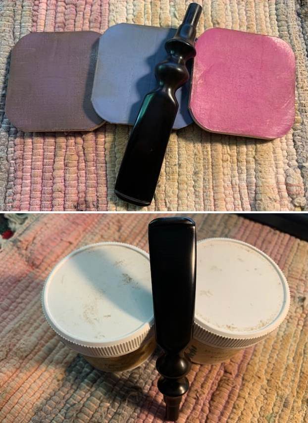 The goal of the next step is the removal (or minimization) of oxidation. Going to my sink, I used cream cleanser, cotton rounds, and a toothbrush, and scoured the stem to remove as much surface oxidation as possible. As the photos show, the result was a hideous, brownish mess – but better off the stem than on it.
