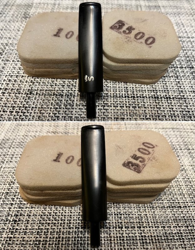 I sanded the stem to smooth it out with 320-3500 grit sanding pads. I wiped the stem down after each pad with an Obsidian Oil cloth. It was beginning to look very good.