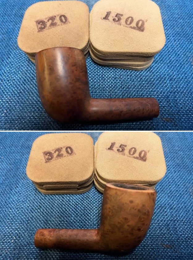 I used 320-3500 grit sanding pads to smooth out the scratches and nicks in the surface of the briar. There were many small scratches and nicks in the briar. I wiped the bowl down after each sanding pad with a damp cloth to remove the sanding dust and debris. It really began to look very good. The grain is quite lovely.