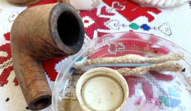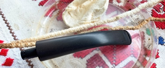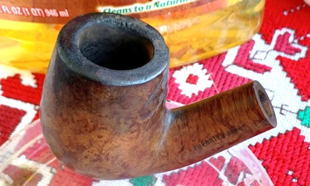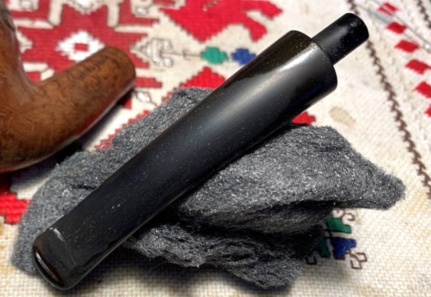 The nomenclature is thin with only ‘Imported Briar’ on the shank. The spelling of briar probably indicates this to be a US manufactured pipe. To begin the restoration of Katie’s pipe, the stem’s airway is cleaned with a pipe cleaner wetted in isopropyl 95%.